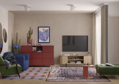 Inwestorzy okazali się osobami o bardzo wyrobionym guście, bardzo bliskim mojej ulubionej estetyce: modernizm, inspiracje mid-century, świadome użycie koloru i wyraziste, ale zrównoważone formy. Dzięki temu proces projektowy przebiegał płynnie, a dla mnie wręcz intuicyjnie, w dialogu i z minimalną liczbą korekt.