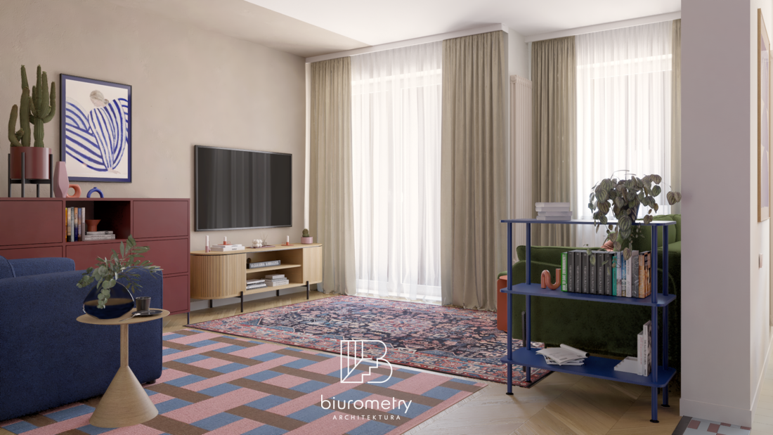 Mieszkanie 2+2 na Bezrzeczu – nowoczesny modernizm z nutą mid-century